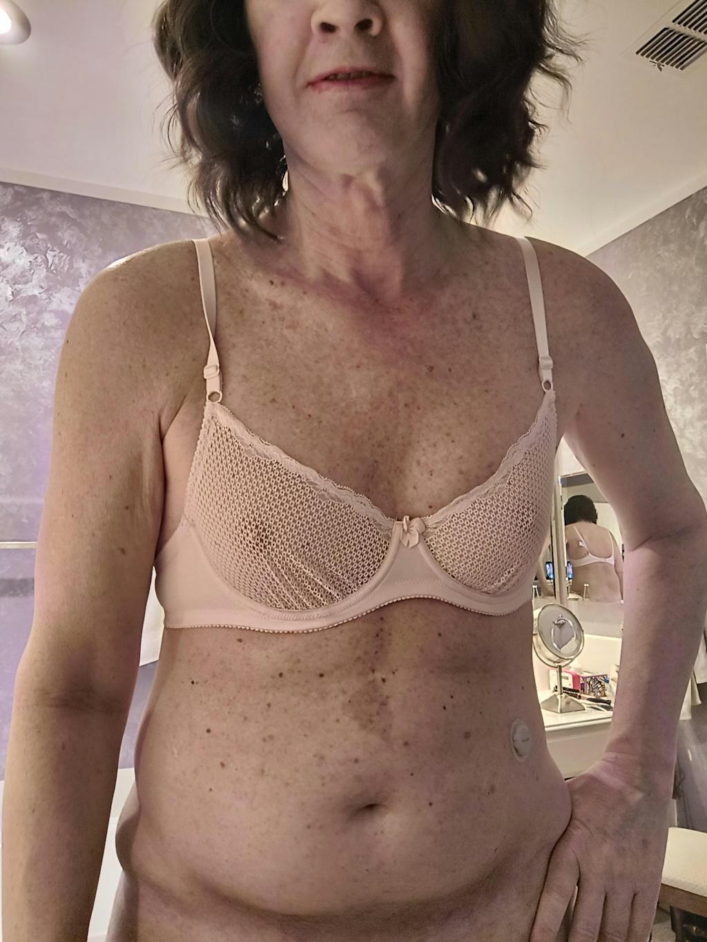 This silhouette supports naturally flatter upper busts common among post-nursing or menopausal users. -
